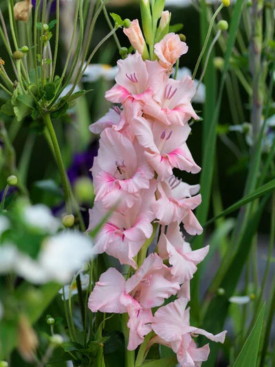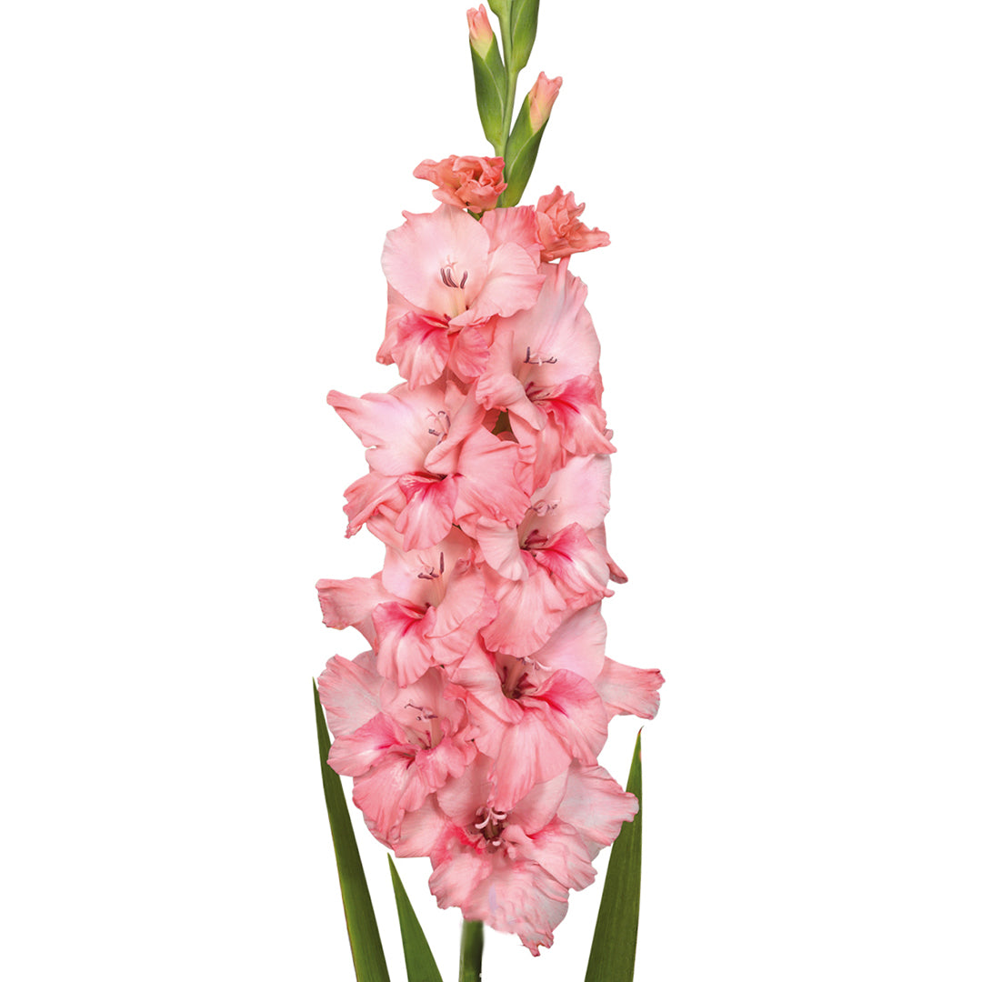 Apraksts: Rozā krāsas lielziedu gladiola, ziedkāta garums 120 - 140 cm, ziedu iegūšanai nepieciešamais laiks 80 -100 dienas.