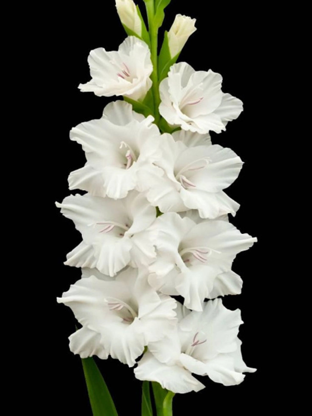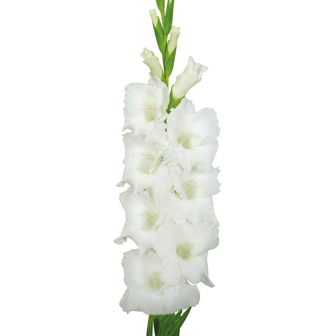 Apraksts: Balta gladiola ar auga augstumu 145–155 cm un augšanas laiku 70 līdz 90 dienām.